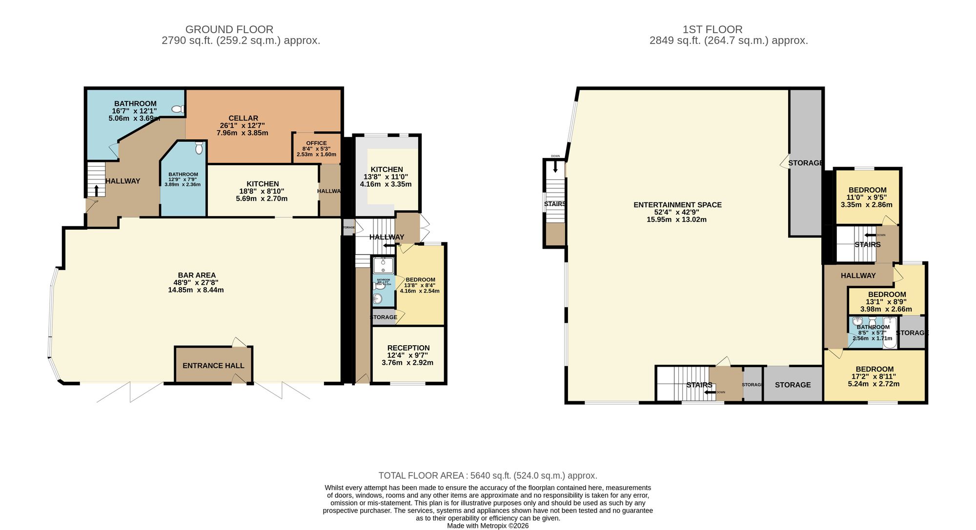 The commercial side comprises a large bar area with bifolding doors, expansive windows, male and female toilets, a beer cellar, and a commercial kitchen. Upstairs, a large entertainment space with a stage adds to the development potential. With a total of over 4,000 sq ft, the commercial space offers the potential to create between 4 to 6 residential apartments or more, depending on design and planning.