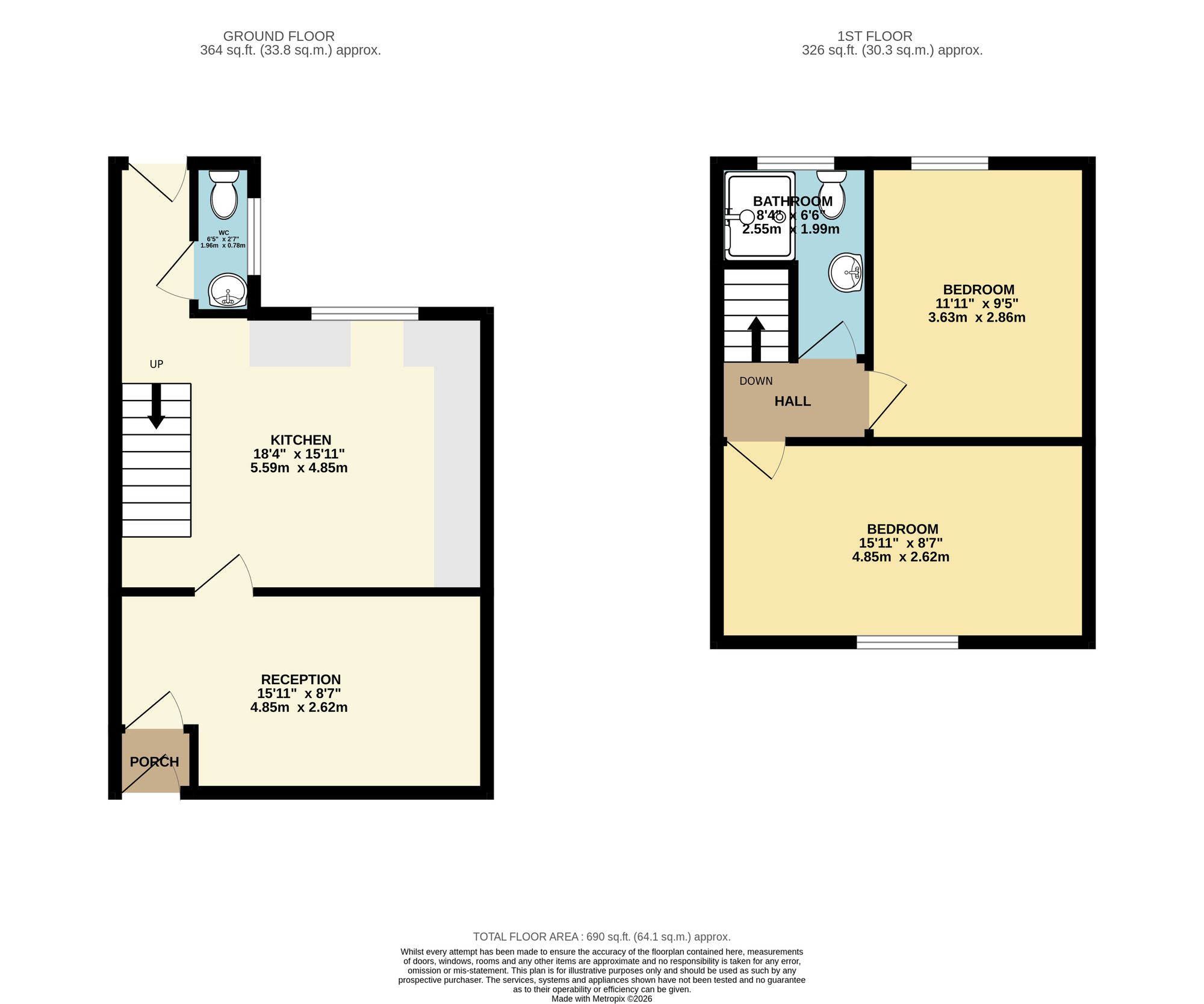 Upstairs, the property features a shower room/wet room and two well-proportioned double bedrooms.