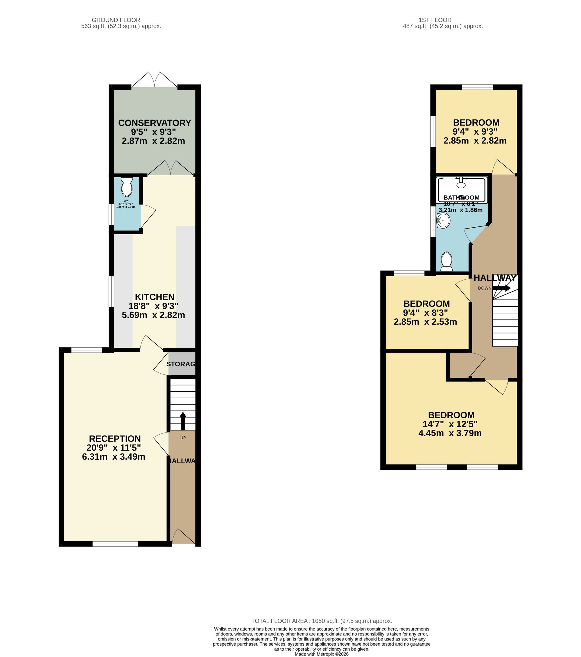 Upstairs, a spacious landing with storage leads to three generously sized double bedrooms, along with a modern family shower room, offering excellent space for growing families.