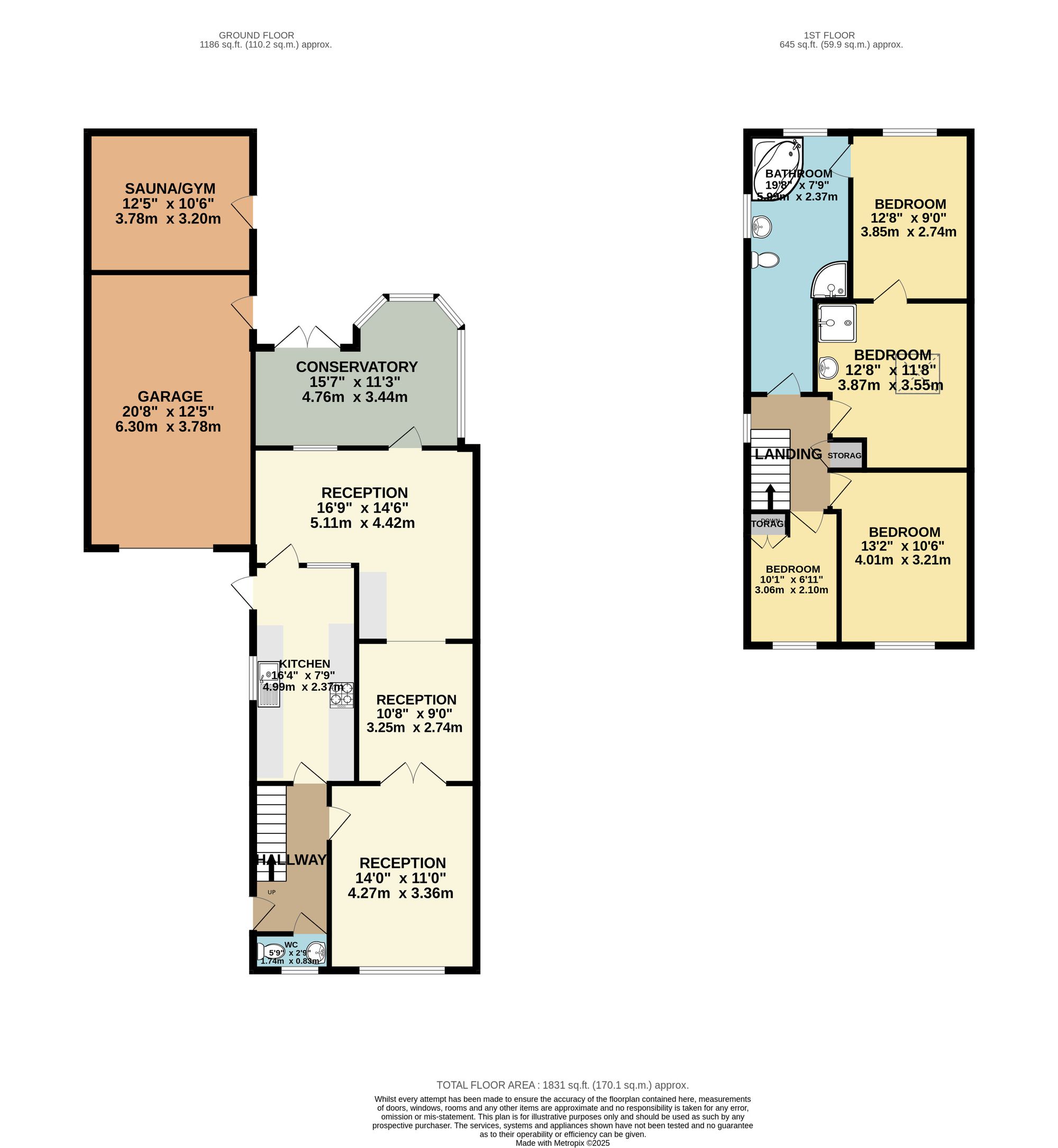 garage with garden room with sauna and gym space