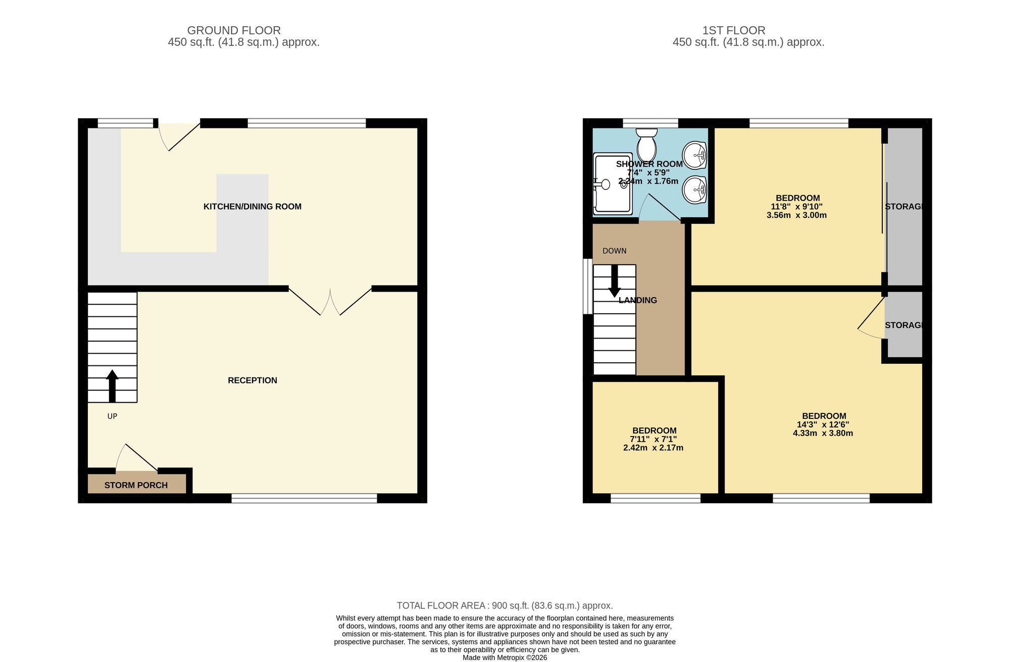 Upstairs, the bright landing leads to a modern family shower room with dual sinks, two well-proportioned double bedrooms with built-in storage, and a further single bedroom.