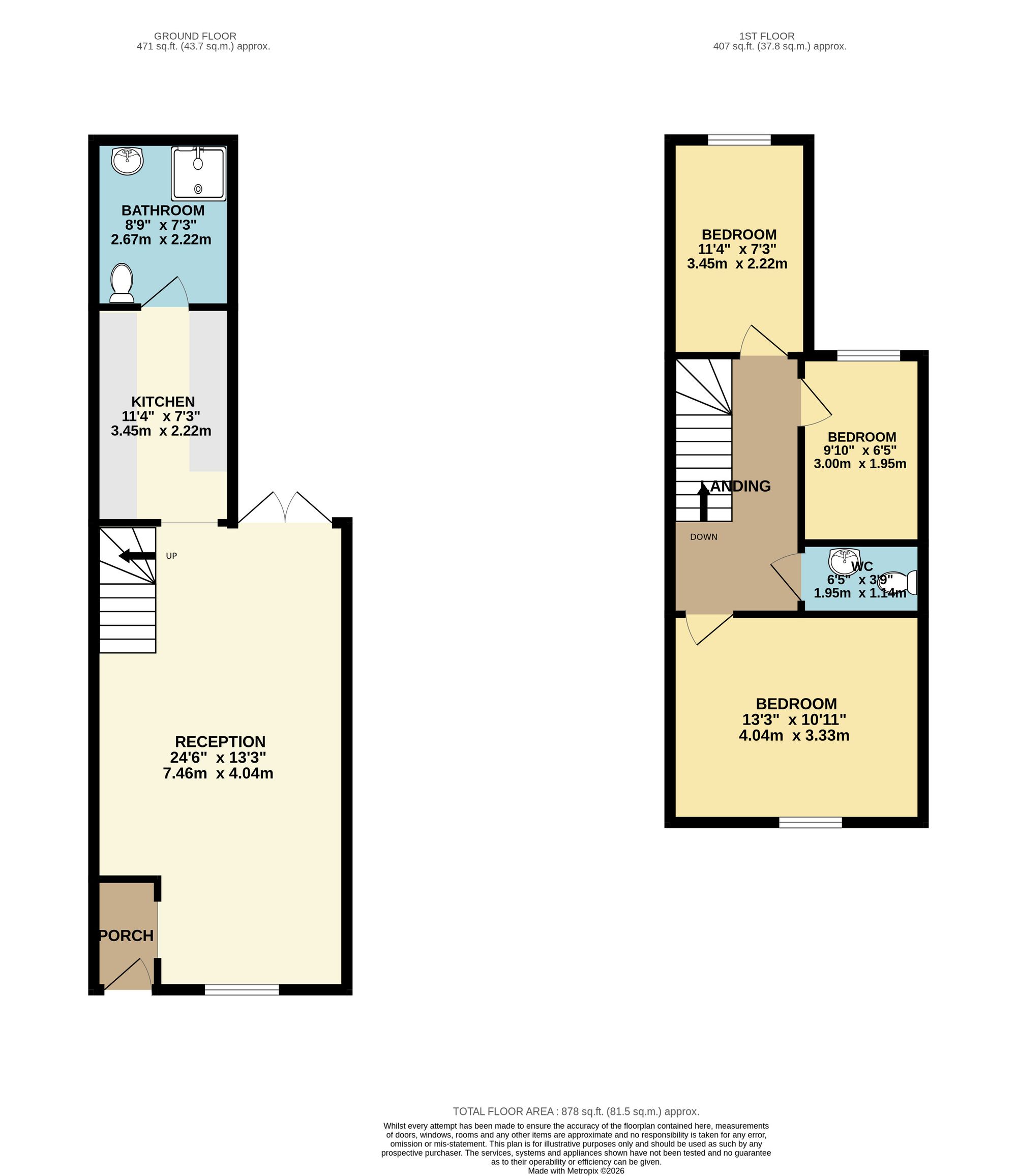 Upstairs, the landing provides access to a convenient WC, two generously sized double bedrooms, and a single bedroom which is currently utilised as a dressing room.