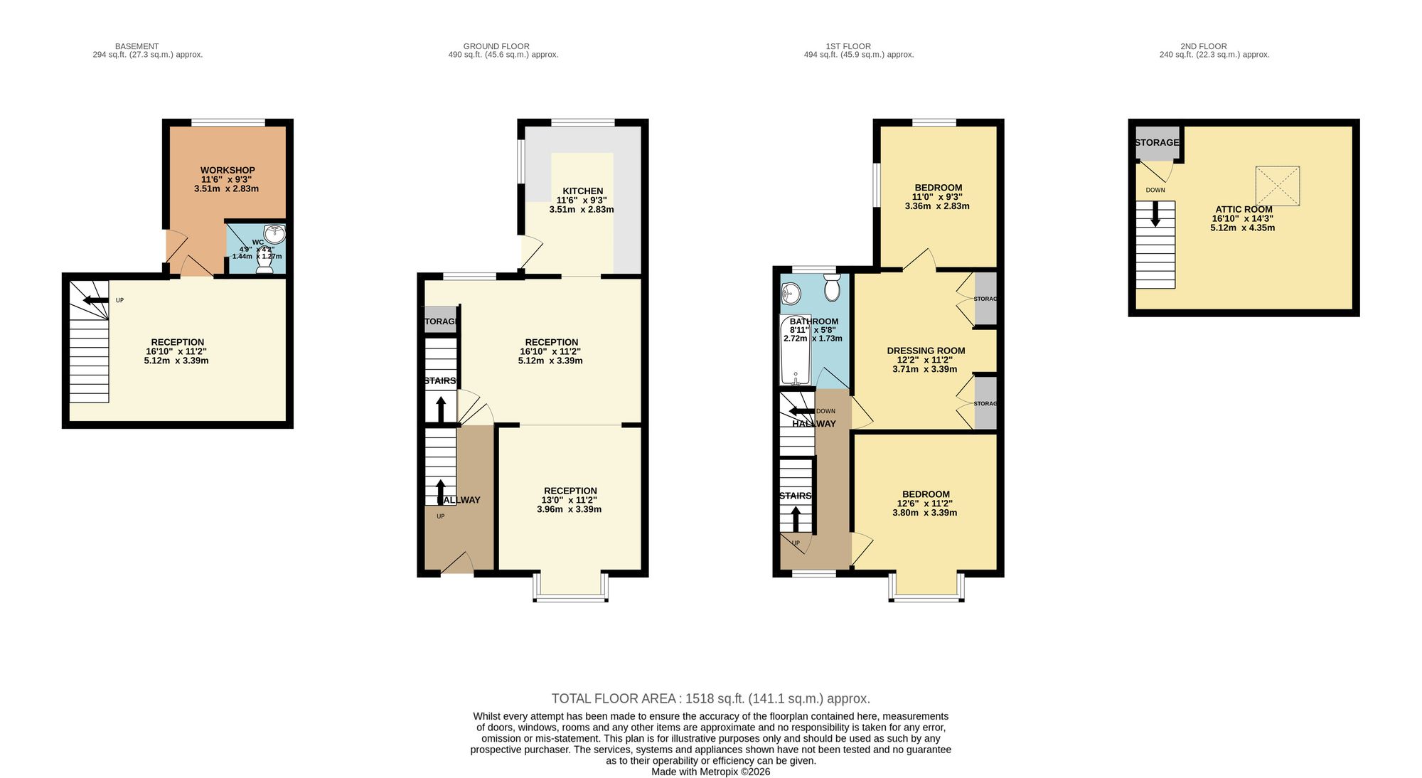 The lower ground floor adds further flexibility, featuring an additional reception room, a WC/Utility room, and a workshop—ideal for hobbies, storage, or home working.